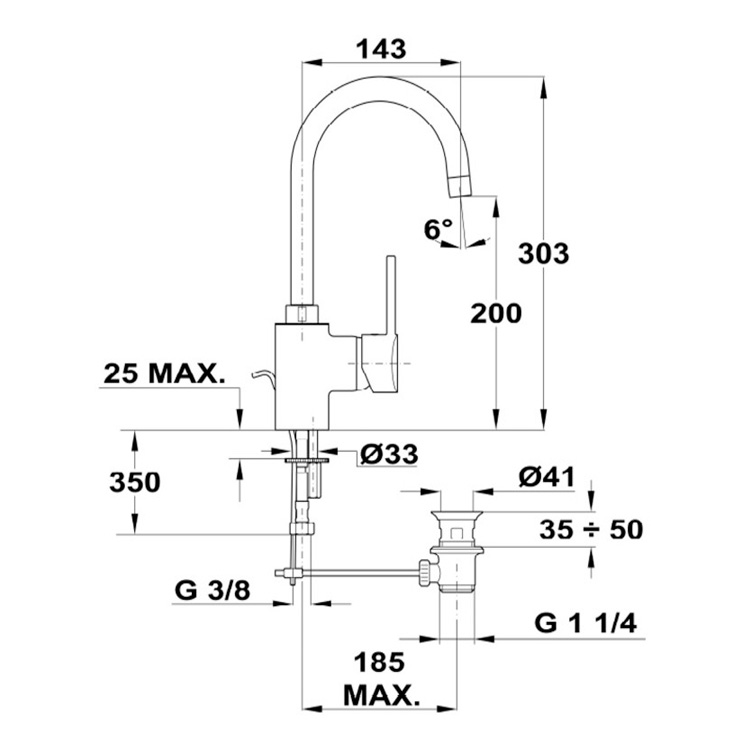 - Mitigeur lavabo avec col de cygne.